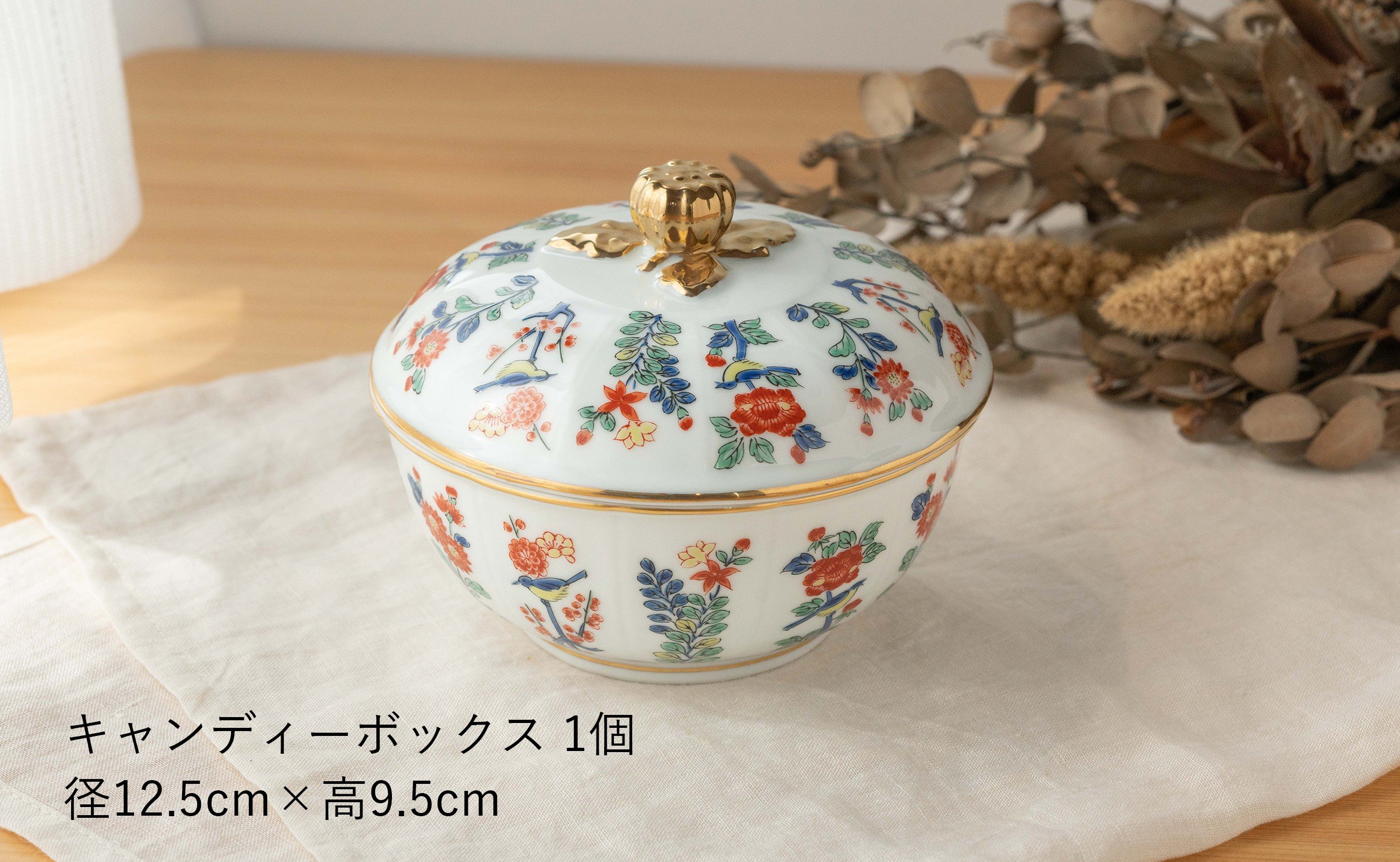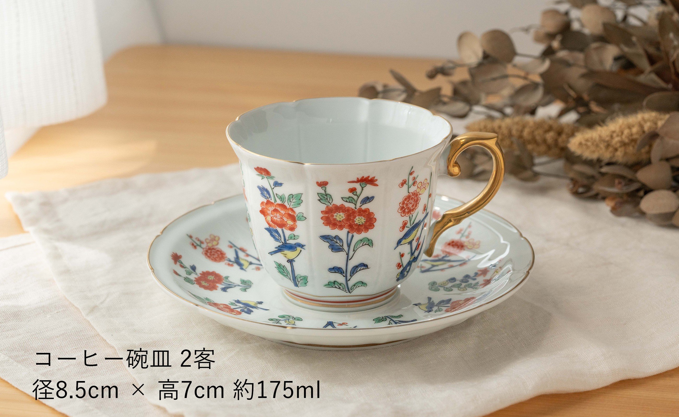 - 【セット】 有田焼 〈マイセン写し色絵草花文〉 7点 テーブルコーディネート セット ( コーヒー碗皿2客 ケーキ皿2枚 楕円皿1枚 キャンディーボックス1点 バスケット1点 ) 賞美堂本店