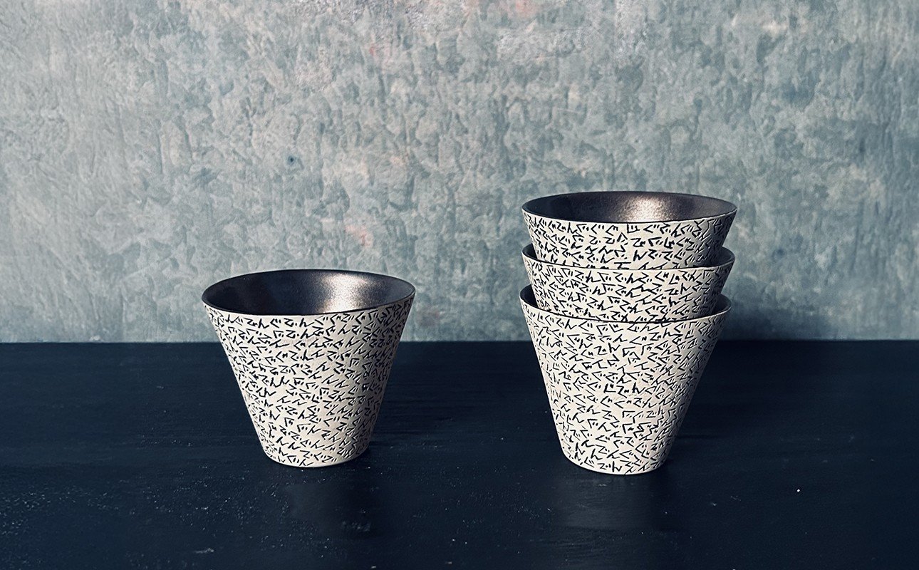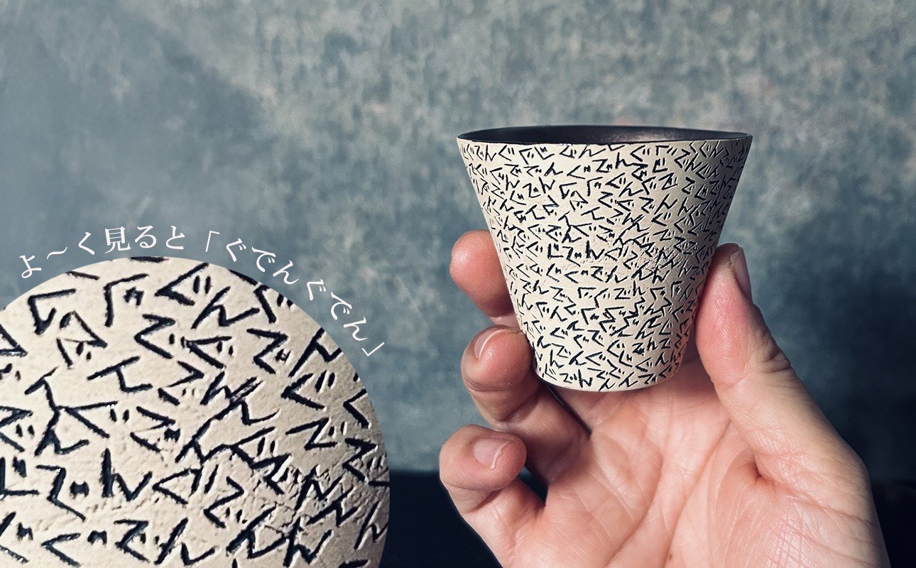 - 【萬古焼(ばんこやき)】表現技法で萬古焼に新風を吹き込むアーティスト谷口純一 象嵌技法(ぞうがんぎほう) 「ぐでんぐでんぐい呑」 【谷口純一 グイ呑み 1点もの 一珍 三重県 四日市市 四日市】