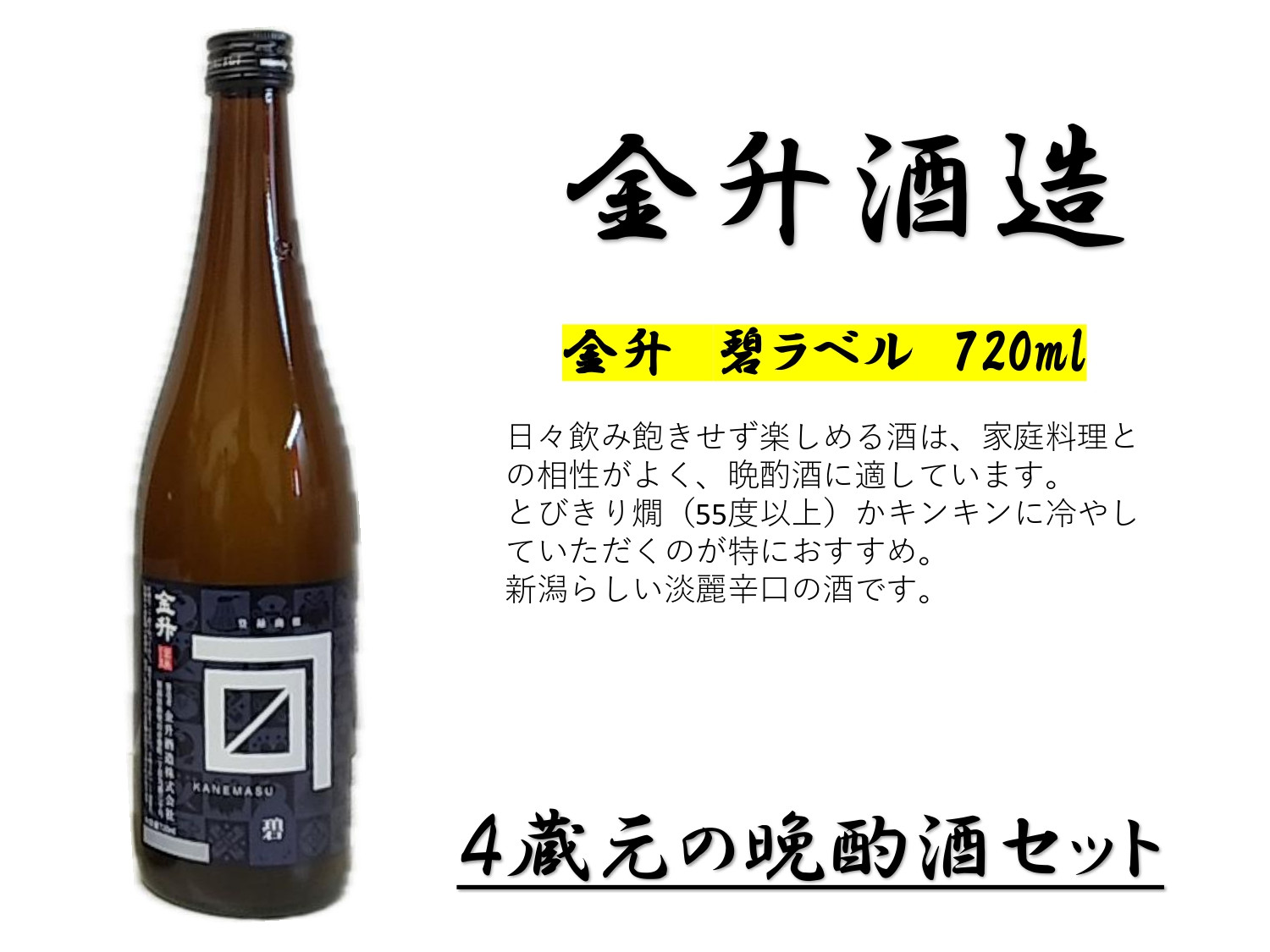 地酒 4蔵元 の 晩酌酒 セット 720ml × 4本 新発田地酒 飲み比べ 日本酒 酒 お酒 さけ おさけ 四合瓶 菊水 王紋 金升 ふじの井 贈答 贈答品 ギフト プレゼント 産地直送 数量限定 国産 新潟県 新潟県産 新潟 新発田市 新発田 E133_P