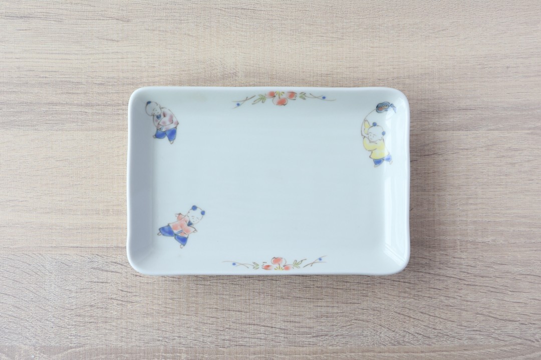 有田焼 アウトレット 唐子 焼皿 4枚セット 【山忠】食器 器 うつわ 皿 角皿 和食器 レトロ 昭和レトロ 4枚 セット アウトレット A18-265