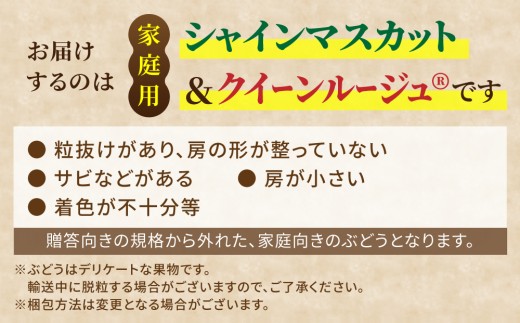 【先行受付2026年発送】家庭用シャインマスカット&クイーンルージュ(R) 合計2kg以上(各1〜3房)|さとのみ果樹園 ※2026年9月中旬以降順次発送