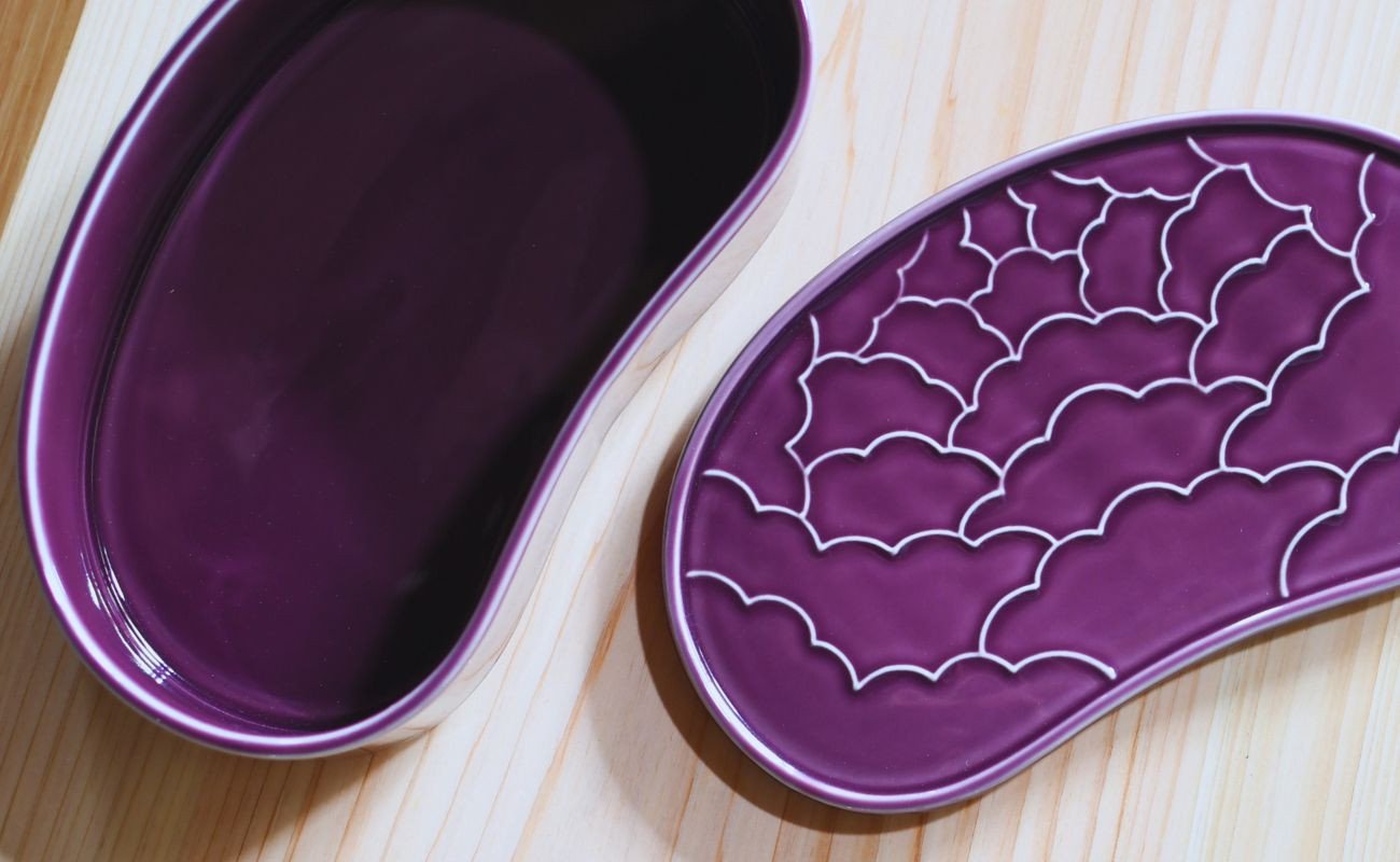 - 有田焼 紫釉 繭型蓋物【ARITAYAKI-STORE】食器 うつわ ハレの日 めでたい おもてなし おせち 高級食器 ハンドメイド A24-146
