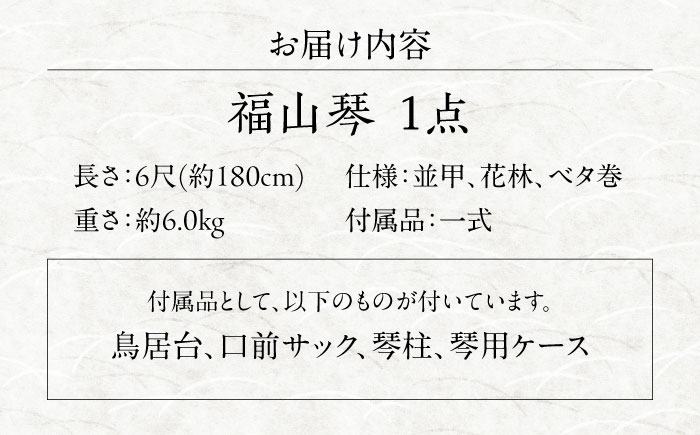 琴 楽器 福山琴 (ベタ巻) 6尺 (付属品一式付き) 工芸品 伝統 和 人気 おすすめ ギフト 贈り物 プレゼント 伝統工芸品 和楽器 十三弦 箏曲 生田流 山田流 国産 鳥居台 口前サック 琴柱 琴用ケース セット 手作り 手作業 職人技 中級者向け 日本製 お琴 演奏 練習用 趣味 インテリア 工芸品 逸品 芸術品 広島 福山市/福山邦楽器製造業協同組合 [BAEW004]