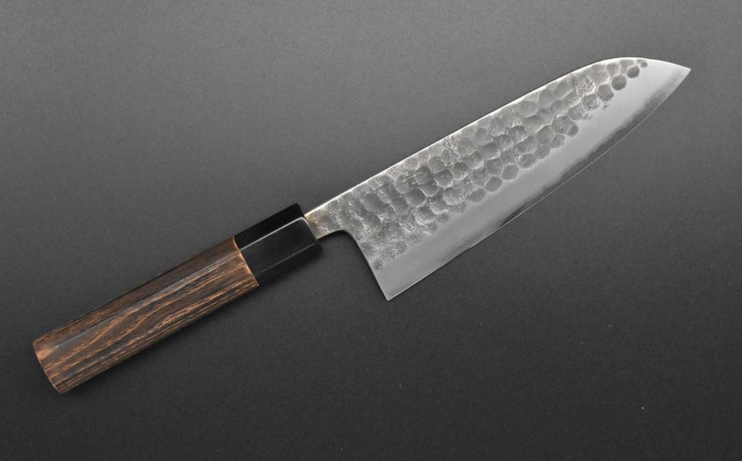 - [金次郎] 三徳包丁(両刃) 刃渡り165mm 左利き・右利き使用可 槌目仕上げ 鋼 ステンレス 燕三条製 贈答用 ギフト 紙箱入り 【103S002】
