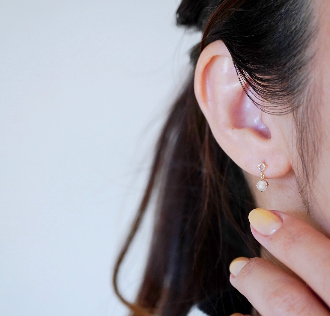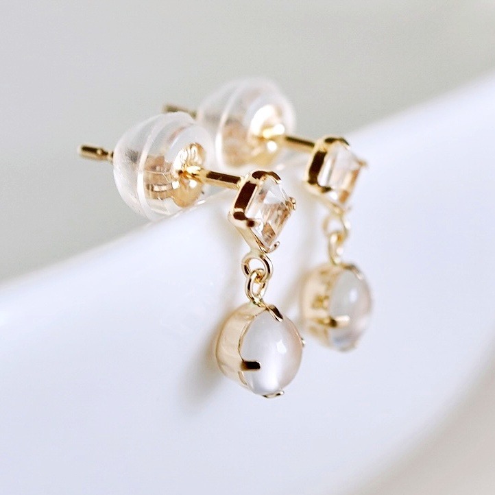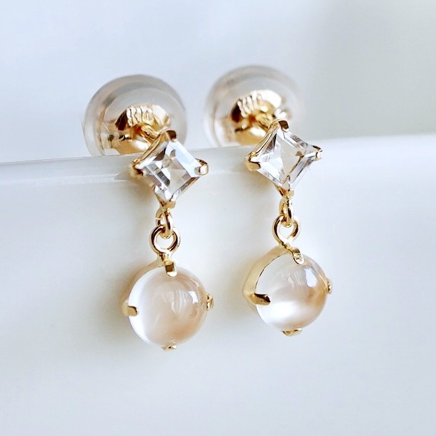【ジュエリー】K10 イエローゴールド ホワイトムーンストーン 揺れる ピアス 保証書付 SR-2012 242-003-d