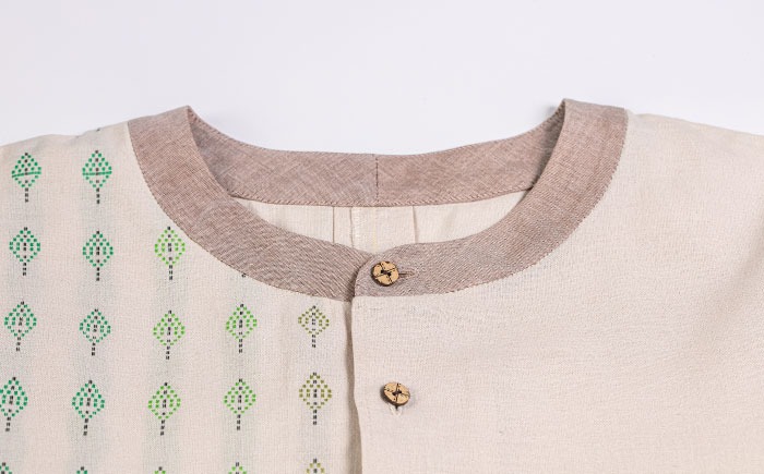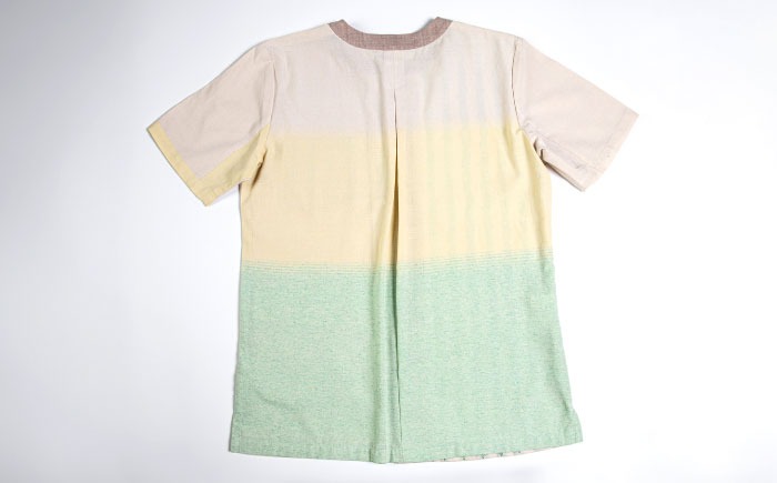 サマーシャツ(ベージュボーダーグラデーション / メンズ) 琉球織物 経浮花織 ファッション フォーマル カジュアル 冠婚葬祭 / 沖縄市 FABRIC SHOP MINAMI[BCCS006]