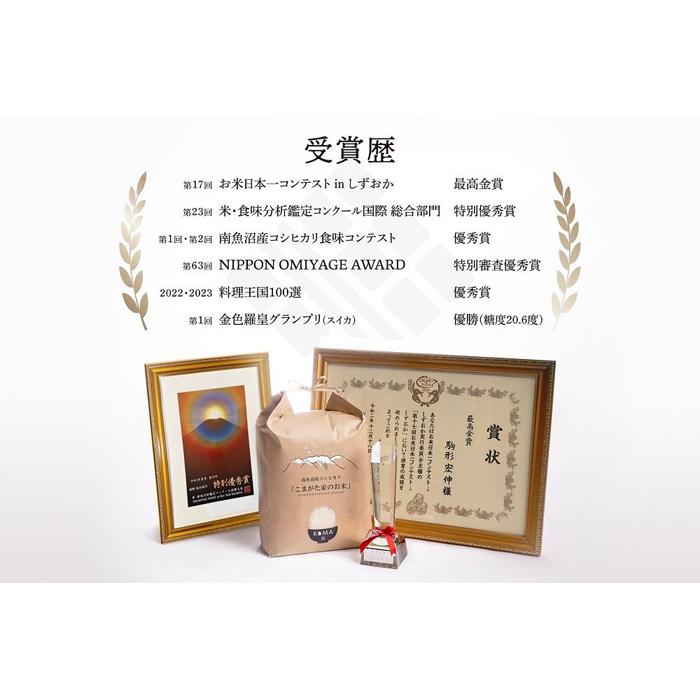 【ふるさと納税】【令和7年産新米】最高金賞受賞 栽培期間中農薬5割減栽培 南魚沼産コシヒカリ「こまがた家のお米」10kg | お米 こめ 白米 コシヒカリ 食品 人気 おすすめ 南魚沼 新潟県産