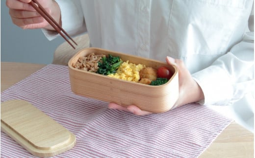 - 【食器用洗剤OKの曲げわっぱ弁当箱】三ツ星弁当箱 500ml ランチボックス 大人 女子 一段 国産 まげわっぱ お弁当 加茂市 朝倉家具(本体:杉、蓋:桐)《サイズ:200×83×63(mm)》配送日指定可
