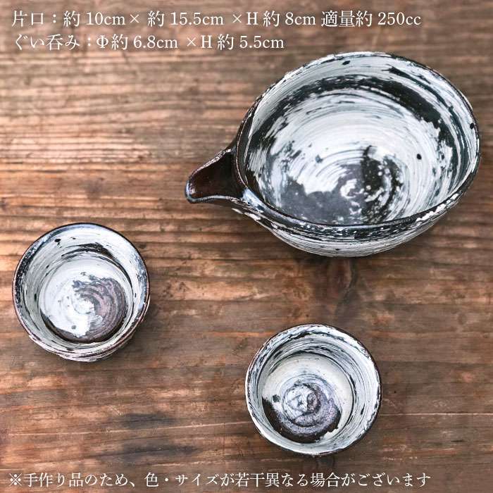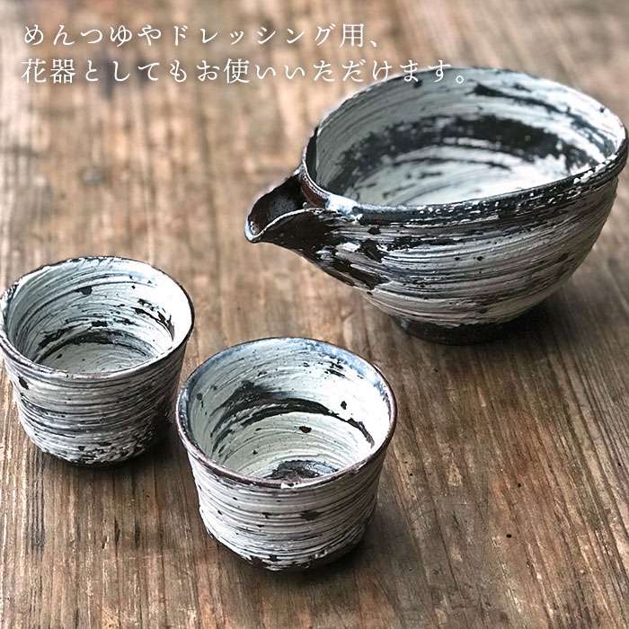 - 刷毛目 酒器 セット(片口×1、ぐい呑み×2)【 唐津焼 】 糸島市 / 雅樂窯 [ASE009]