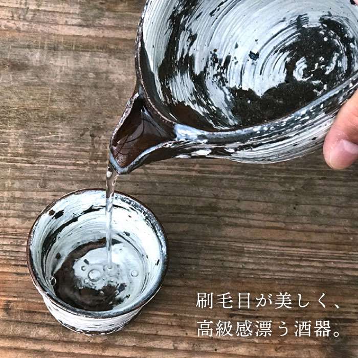刷毛目 酒器 セット(片口×1、ぐい呑み×2)【 唐津焼 】 糸島市 / 雅樂窯 [ASE009]