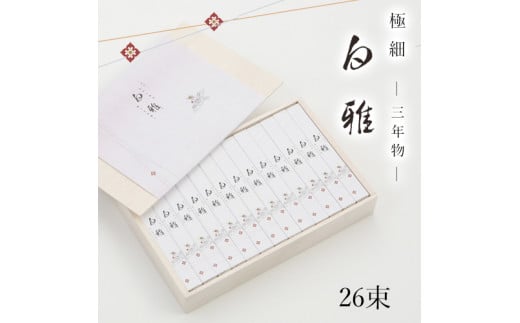 - ※予約受付(R8年4月頃から順次発送)BA-7.【白く雅やかな】三輪素麺 極細 白雅 大古(三年物)26束 (ASJ-55)