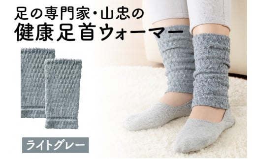 - 健康足首ウォーマー(フリー)【ライトグレー】 シルクとウールの二重構造 温かい 冷え性 足湯のような暖かさ フリーサイズ 加茂市 山忠