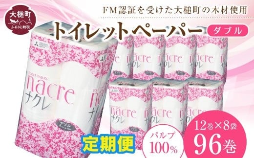 【ナクレ】【6回定期便 3ヶ月毎お届け】トイレットペーパーダブル96ロール (12ロール×8袋)