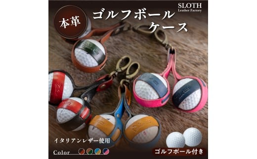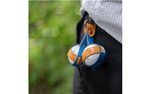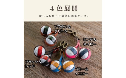 - 〈本革〉イタリアンレザー ゴルフボールケース (ブルー&イエロー・ボール付き) ゴルフ ゴルフボール入れ レザーケース ギフト
