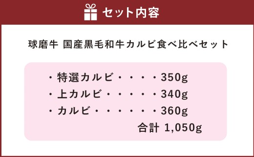 球磨牛 国産 黒毛和牛カルビ(計1,050g)食べ比べセット