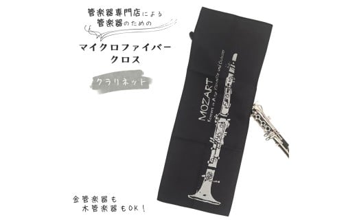 - 管楽器 のための マイクロファイバークロス 長方形〈クラリネット柄 ブラック〉 【管楽器専門店 マール・ミュージック オリジナル】管楽器の お手入れ に