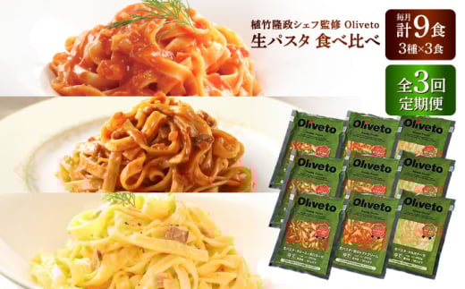 【全3回定期便】植竹隆政シェフ監修 Oliveto 生パスタ 3種類×3食(計9食)食べ比べセット / パスタ 個包装 冷凍食品 冷凍パスタ 冷凍 詰め合わせ 生 調理済 麺類 簡単 人気 高評価 味付け 時短 手軽 いつでも 長持ち 保存 長期間 ぱすた セット イタリアン おかず もちもち 食べ比べ 熊本県 菊陽町【亀井通産株式会社(株式会社マルハニチロ九州)】[BHAY010]