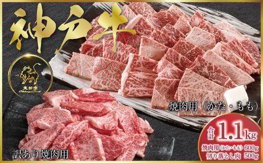 神戸牛 焼肉用 600g・訳あり焼肉用 500g セット 合計1,100g (ASGY3) 【発送期日最長2か月前後】 ふるさと納税 牛肉 ブランド和牛 国産 和牛 神戸牛 神戸ビーフ 焼肉 切り落し カルビ かた もも バーベキュー 太田家 兵庫県 神戸 但馬 朝来 朝来市