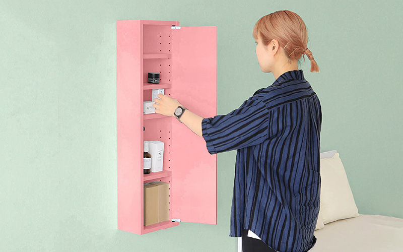 - [e55-h002] 鏡付き ウォールラック WB-DXミラーH-nine薄型 aino「パステルカラー」ワンプッシュで開閉できるミラー扉付き!【日本製 完成品 家具 インテリア ウォールシェルフ 壁掛けラック 北欧風 木製 収納】【選べる6色!】
