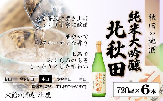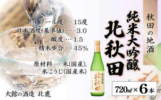 【隔月3回定期便】北鹿『純米大吟醸北秋田』720ml×6本(全18本) 530P4001 / 東北 秋田 大館 酒 日本酒 北鹿 ほくしか ホクシカ 北秋田 きたあきた 純米大吟醸 ギフト プレゼント 贈り物 母の日 父の日 敬老の日 誕生日 記念日 お祝い 祝 セット 地酒 6本 定期便