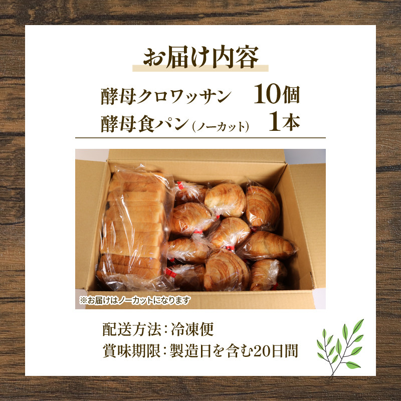 【酵母】クロワッサン10個 + 食パン1本 セット ノーカット ( パン 惣菜パン 冷凍パン 天然酵母 冷凍 詰め合わせ 小麦 朝食 朝ごはん お取り寄せ 食べ比べ 京都 国産 )