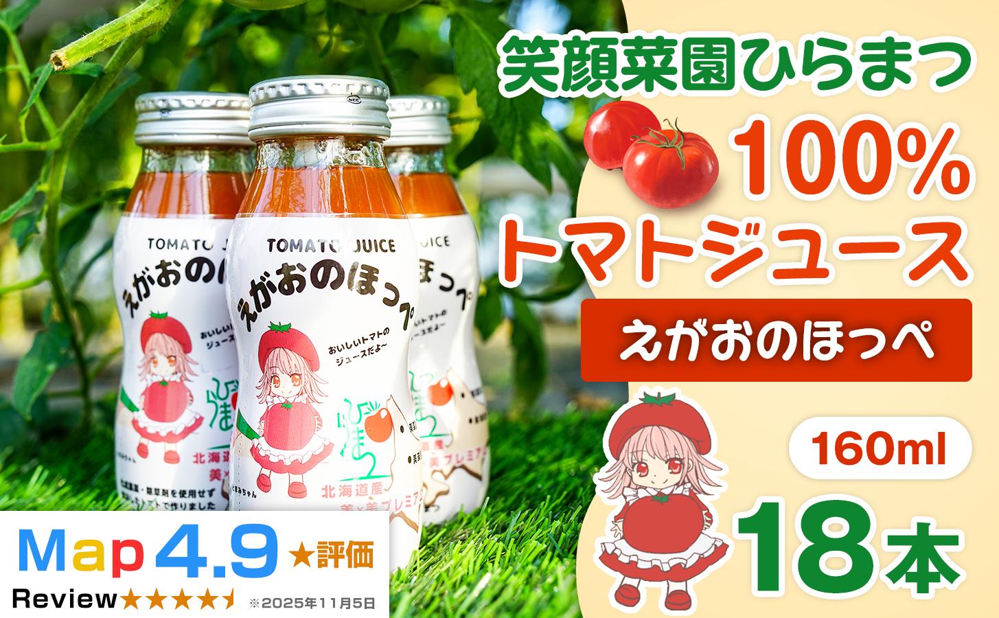 【無塩・無加水】毎日飲みたくなる大玉トマト100%ジュース えがおのほっぺ 160ml×18本| 新鮮野菜 旬の野菜 ヘルシー 健康 高糖度 大容量 リコピン ミネラル 健康 おやつ ギフト 贈り物 北海道 上川郡 [035-22]