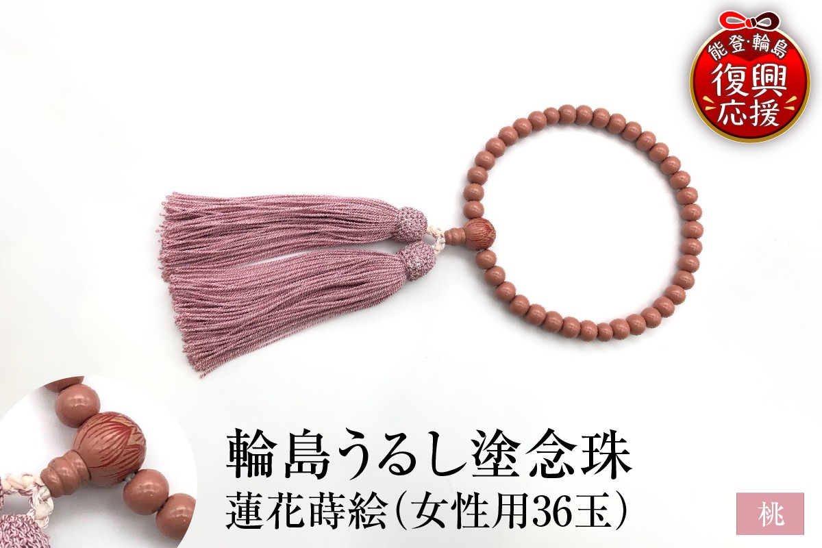- 輪島うるし塗念珠(女性用36玉)桃 蓮花蒔絵