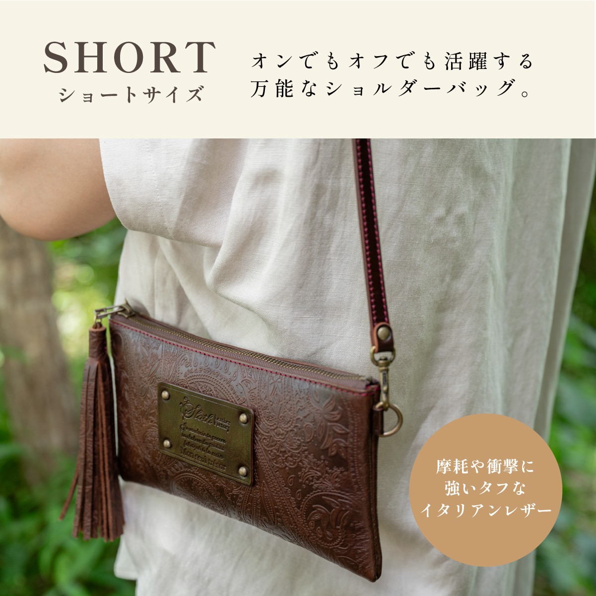 〈本革〉イタリアンレザーショルダーバッグ(SHORT・ブラック) ペイズリー 本革カバン 肩掛けカバン ギフト 刻印無料 名入れ無料