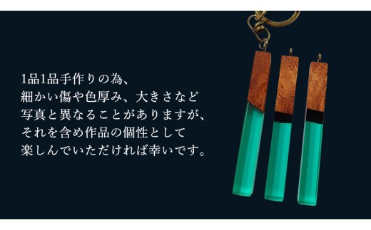 - 花梨 ( カリン ) の木を使用したストレート型レジン キーホルダー 《エメラルドグリーン》 金運 商売繁盛 縁起物 大工 建築家 職人 天然木材 手作り 工芸品 民芸品 ストラップ 雑貨 小物 アクセサリー [CM022sa]