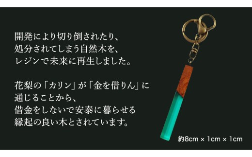 花梨 ( カリン ) の木を使用したストレート型レジン キーホルダー 《エメラルドグリーン》 金運 商売繁盛 縁起物 大工 建築家 職人 天然木材 手作り 工芸品 民芸品 ストラップ 雑貨 小物 アクセサリー [CM022sa]