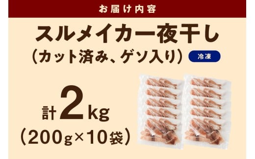 島根県産スルメイカ一夜干しカット済 計2kg(小分け200g×10袋)小分け 干物 一夜干し イカ 魚介類 スルメイカ 【005_2061】