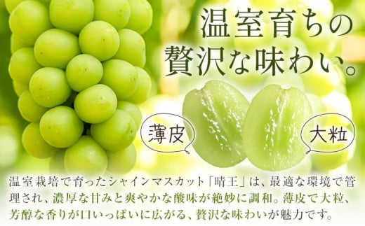 - 【2026年発送先行予約】シャインマスカット 温室 晴王 2房(合計約1.4kg) 4回お届け シャイン マスカット《2026年7月中旬-10月中旬頃出荷》晴レ乃青果 (岡山中央卸売市場店(富士紙工 有限会社)) 送料無料 岡山県 浅口市 フルーツ 果物 岡山県産【配送不可地域あり】