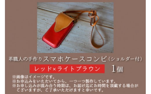 - スマホケースコンビ(ショルダー付)【レッド×ライトブラウン】【本革 牛革 スマホカバー スマホケース スマホ ショルダー付 手縫い 雑貨 おしゃれ ファッション オリジナル レザー職人 フウネレザーファクトリー】 [BFAJ065]
