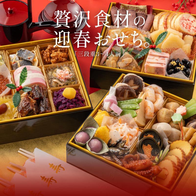 - [先行予約・数量限定] 【12月30日お届け】しおそう オリジナル 『 迎春 おせち 』 3段重 [34品 3~4人前]