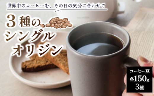 シングルオリジンコーヒー 150g 3種セット 豆 珈琲 コーヒー豆 珈琲豆 バリスタ ギフト プレゼント ホットコーヒー 朝食 coffee カフェラテ カフェオレ アイスコーヒー 贈り物 150g 3種 奈良市 奈良県