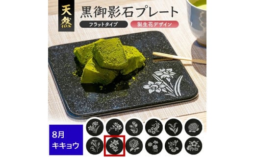 - 天然黒御影石 フラットプレート 1枚 【誕生花彫刻(8月キキョウ)】 SE0276