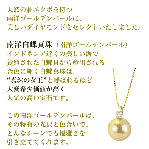 k18製 南洋ゴールデンパール 11mm ( 白蝶貝 南洋真珠 ) ダイヤ 0.15ct ペンダント フォーマル 冠婚葬祭 結婚式 真珠 パール ダイヤモンド ペンダント ネックレス アクセサリー 18金 ギフト 記念 贈り物 贈答用 アクセサリー ジュエリー ジュエリーマーノ 桜川市 [AH141sa]