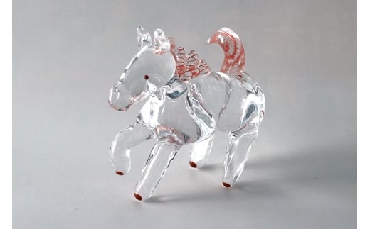 【赤】駆け馬(かけうま) 令和8年 R8 2026年 干支 馬 午 お正月 モチーフ 茨城県 ガラス 置物 赤 黒 白 ガラス工房 神魂 笠間市