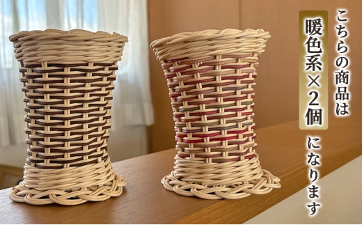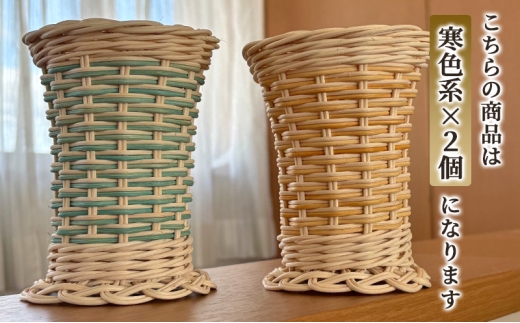 籐の手染め手編みペン立て 2個セット ナチュラル【寒色系】 [カラーラタン彩都] 雑貨 日用品 文房具 福祉用品