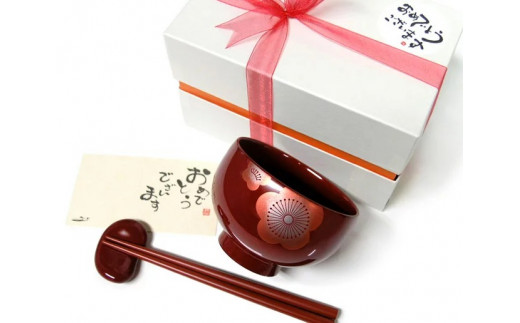 - 花梅ベビー椀セット 朱 [B-04401b]