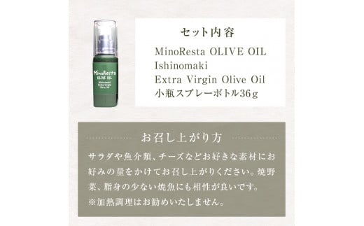 - MinoResta OLIVE OIL Ishinomaki Extra Vigin Olive Oil 小瓶スプレーボトル オリーブオイル オリーブ オイル