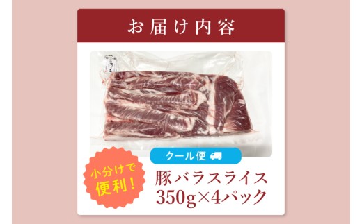 - 【茨城県共通返礼品/鉾田市】国産常陸の輝き豚バラスライス 1.4㎏(350g×4P) | 霜降り 柔らかい 高品質 茨城県産(92-12)