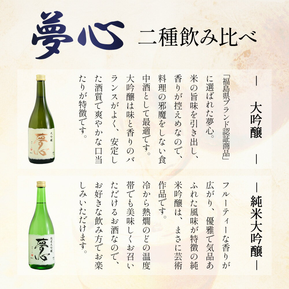 - 【ふるさと納税】日本酒 夢心 純米大吟セット 純米大吟醸夢心 大吟醸夢心 720ml 各1本 計2本 飲み比べ セット ギフト お土産 夢心酒造【07208-0009】