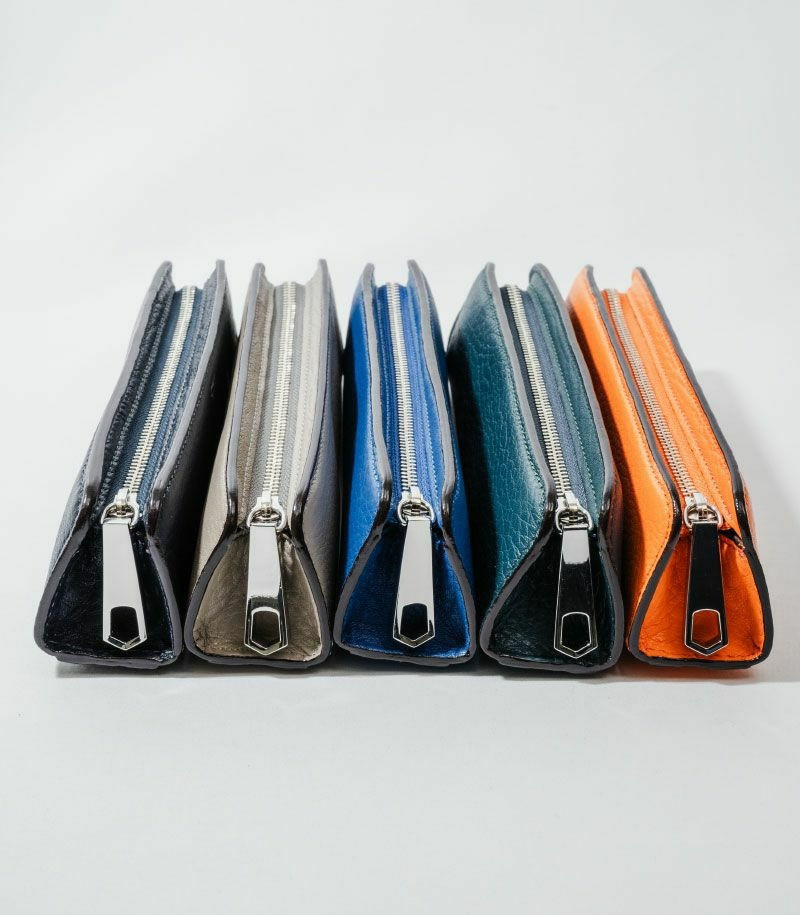 革工房いんのしま 牛革ファスナーペンケース3本挿し【色:サックス】
