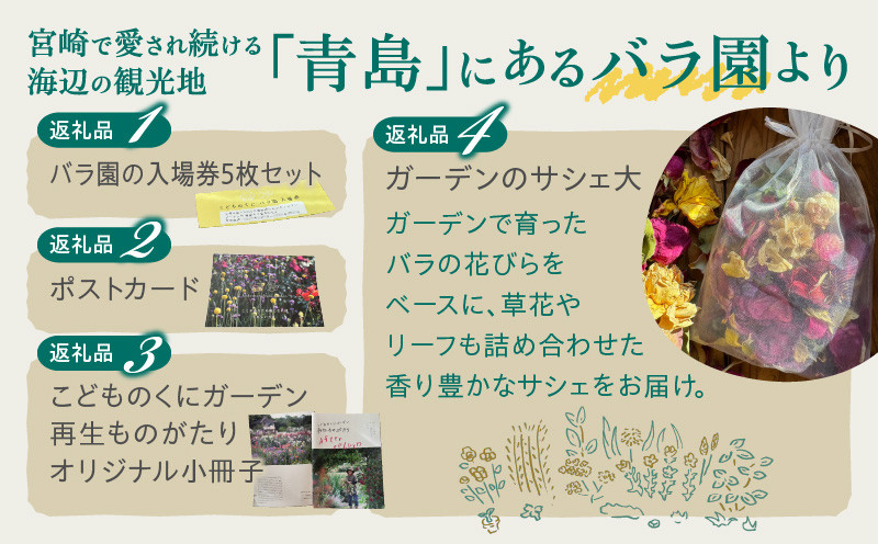 - 青島こどものくに バラ園入場券5枚セット オリジナルグッズ・ガーデンのサシェ大付き_M341-003
