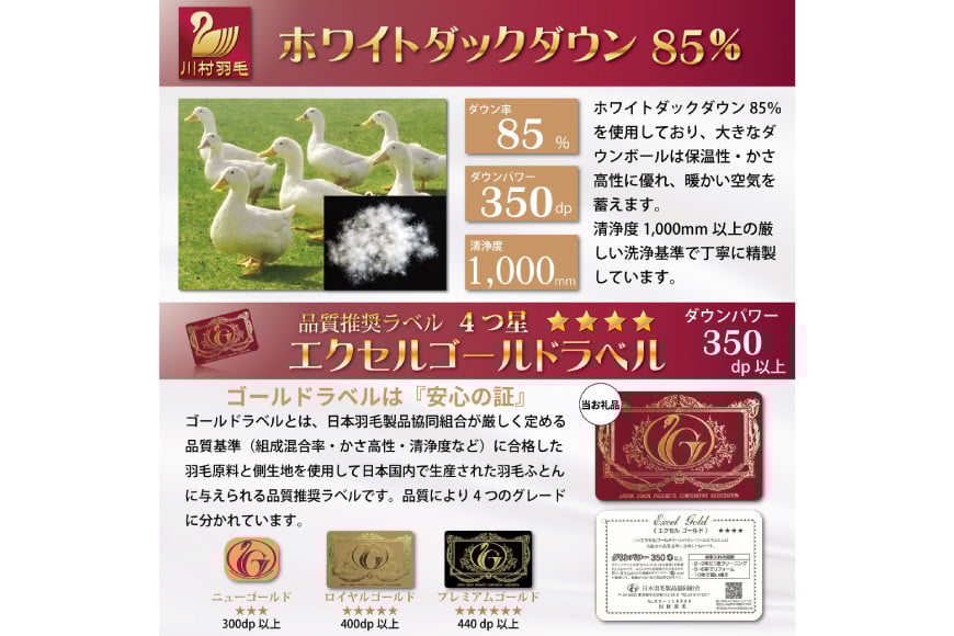 - 【春秋用】 羽毛布団 シングル 合掛け 中厚 羽毛 布団 ホワイトダックダウン 85% 0.8kg (無地 アイボリー) 350dp 掛け布団 春用 秋用 ダウンかけ布団 日本製 寝具 ダウンケット ふとん 4つ星 エクセルゴールドラベル 抗菌防臭 ダニプルーフ 花粉フリー 柔軟加工[川村羽毛 山梨県 韮崎市 20743639]