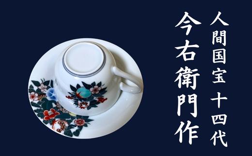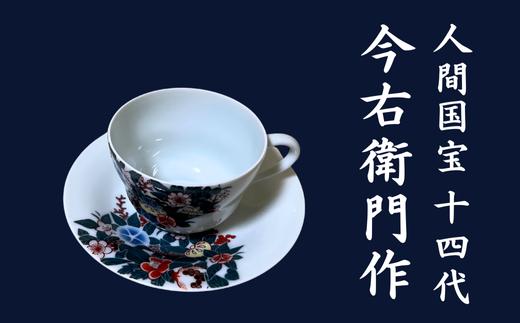 - 【有田焼】人間国宝 14代今右衛門作 色絵墨色墨はじき四季花文碗皿【本人作】