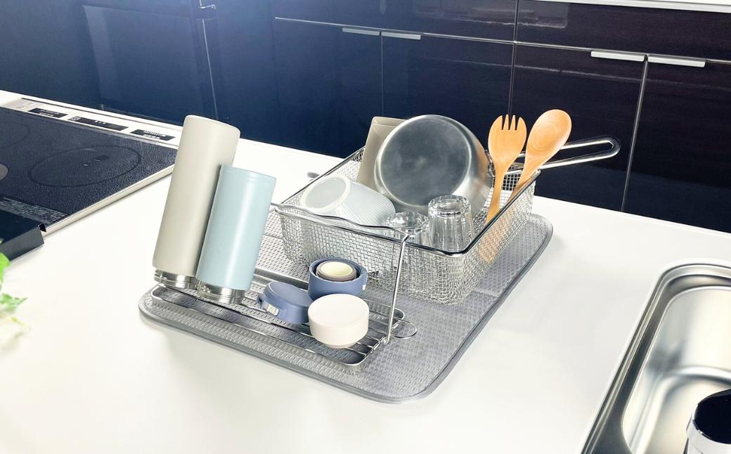 - すっきり暮らすセット(スクエア+マット+ジャグボトル) 水切りかご 水切りマット ステンレス 食洗機対応 キッチン用品 bwsSELECTION [ビーワーススタイル] 燕三条製 省スペース 【024S062】