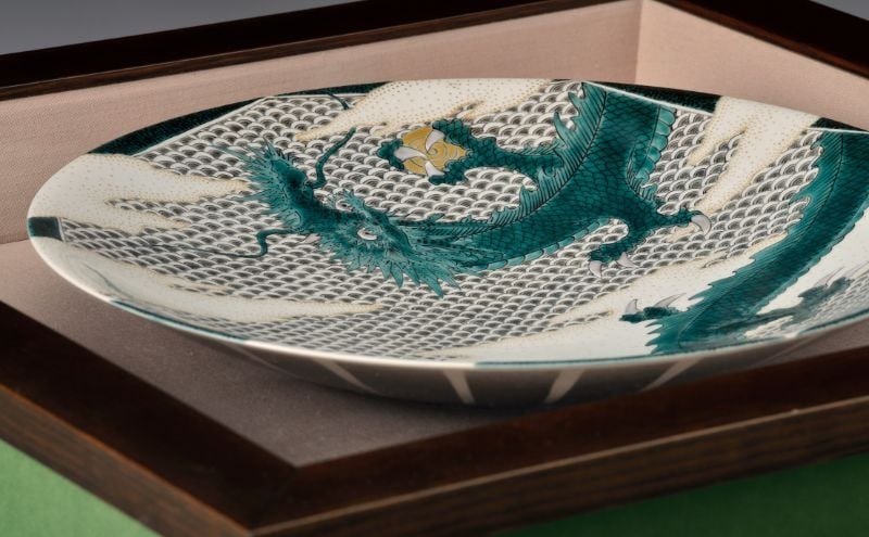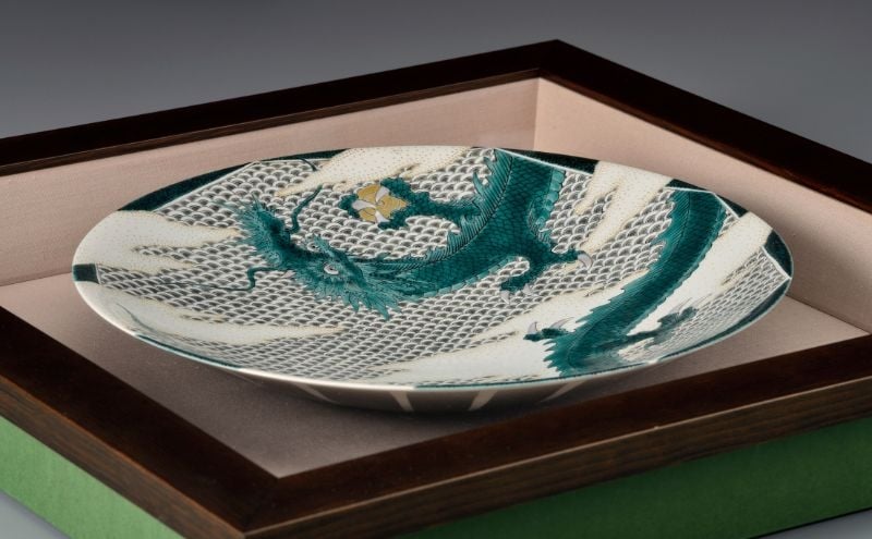 - [№5784-1444]【能美市誕生20周年記念】九谷焼 額皿 福田良則氏