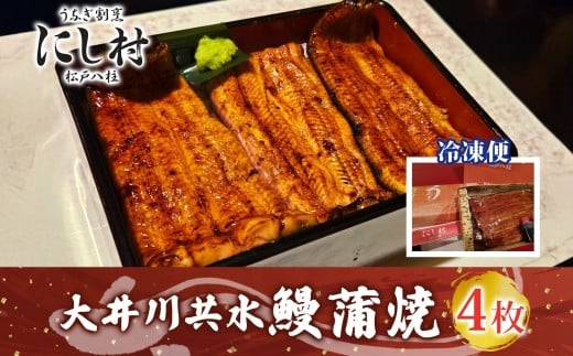 - 幻の鰻 大井川共水鰻蒲焼 4尾 ウナギ 鰻 国産 山椒 タレ たれ 養殖 大井川 共水うなぎ ブランド 土用 丑の日 蒲焼き 熟練の技 冷凍 うなぎ割烹 にし村 お取り寄せ 贈り物 贈答用 ギフト ご馳走 お祝い 送料無料 千葉県 松戸市